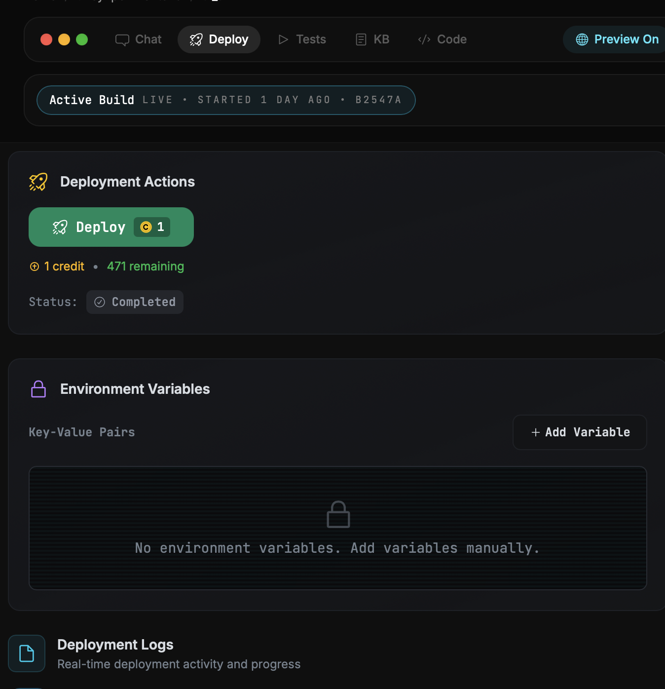 One-click deployment to productionYour site goes live in seconds Get a shareable URL immediately Make changes to your deployed site using natural language: